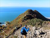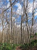 | 11月15日 角田山 ずっと週末にあまりぱっとしない天気が続いていた地元。 この週末はとてもよく晴れた。 と、いうことで、熊の心配のない弥彦山塊のうち、山頂付近の紅葉がとても綺麗な角田山に登ることにした。 結果としては、山頂付近の紅葉にはちょっと遅かったようで、そろそろ散ろうとしている頃だった。 久しぶりの秋晴れとあって、かなりたくさんの人が登山していた。 下りは灯台コースを選択。 低山ながら、このコースはかなりハードなので、筋肉痛になってしまいましたよ。 此の入沢コースから登る。やっと見つけたアケボノシュスランの咲き残り。 ヤブランは、濃い紫の実をたくさんつけている。木々の間から、海と色づいた山々が見える。 これは何の実かな。羽根突きの羽根のような実があちこちに。 お地蔵さんも紅葉の中。 ヤブコウジの実は真っ赤。 お、これはフユノハナワラビではないかしらん。 山頂付近の紅葉は散り際。山頂園地ではススキの穂が揺れている。 観音堂からの眺めも、ススキ越し。 下山は灯台コース。この季節にはこれ、キッコウハグマ。ちょっと遅くてやっと咲き残りを見つけた。 アザミの仲間が咲いている。 こちらはオヤマボクチ。ライオンみたいな花が現役。 おお、海が見えて来たぞ。 いよいよ岩場、というところで、右の山肌の岩が露出している場所を見てみると、 なんと、ロッククライミングしてました。写真の赤丸。右写真の赤矢印の岩の所です。 角田山って、ホントに色々楽しめる山なんだね。 わあ、ツリガネニンジンの咲き残り。それと、ブルーベリーみたいな実。 灯台をみ見下ろす。佐渡も見える。灯台まで下るとホッとする。足、筋肉痛になりました。 10時05分 此の入沢コース登山開始。 10時30分 渡渉。 10時55分 桜尾根コースと合流。 11時40分 灯台コースと合流。 11時43分 山頂到着。 11時55分 観音堂到着。昼食休憩。 12時27分 下山開始。 12時56分 三望平。 13時01分 灯台コース分岐。 13時05分 七合目。 13時26分 五合目。 14時01分 一合目。 14時16分 灯台。 14時27分 駐車スペース到着。 ↑ページのトップへ |