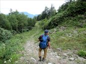 7月12日 熊野岳 御田ノ神園地 この翌週の三連休に登山遠征を予定しているので、この日は軽めで、それでいて花が見られる山をチョイス。 ちょっと自動車の距離が長いが、裏切らない花の山、蔵王の熊野岳に行ってみた。 午前7時半前に自宅を出発するあたりからすでに遠い山をナメている感じなのだが、なぜか道を誤って磐越道に入ってしまい、東北道経由で上山温泉ICまで行き、蔵王エコーラインに乗るというかなりの遠回りをしてしまって、結局刈田リフトに到着したのは正午の15分前。腹減った。 昨年より100円UPの往復900円になってしまったリフトに乘ってお釜のヘリにたどり着く。 ここに到着するまでの福島県内で霧の濃くなった真っ白な雨に出合ってしまい、お天気が気になったが、上空はすっかり青空だ。 見て、この青空。飛行機雲が何かの幾何学模様を描いている。オニアザミ、オトギリソウ。 シモツケ、シロパナノニガナ、オノエランは本当にたくさん咲いていた。まるでマイヅルソウみたいにあちこちにたくさんあった。 アオノツガザクラはもう終わり頃。山頂神社。下山時のたっぷりコマクサ。 えーと、ホンットにたくさん咲いているコマクサの図なんだが、小さい写真じゃわかんないわね。 実は私のカメラの画面では石も花も同じに見えて、どこに何があるのかさっぱり分からない状態だったのよ。 人間の目が一番楽しめましたよ。 お釜を見下ろすコマクサ。見あげてもコマクサ。右の鳥はビンズイらしい。虫を咥えています。 こちらは御田ノ神湿原の花。ゴゼンタチバナ、ウラジロヨウラク、キンコウカ、サワラン。 とにかくワタスゲがすごかった。 あちこちでワタスゲゆらぐ湿原を見てきたが、こんなにドンピシャで綿毛のシーズンにはまったことがない。 白くてふわふわした綿毛がずっと奥まで揺れていた。 ハクサンシャクナゲは少し早かったようだ。右はチングルマの穂。こっちもすごかったです。 小屋のベニバナイチヤクソウも終わってたけど、白っぽいハクサンチドリを見つけた。 トキソウはあちこちにたくさん咲いていたね。 お天気を心配したわりに結局いい青空に恵まれた。熊野岳と湿原を堪能して、帰路は高畠から国道113号を利用する最短距離ルートを選択したら、まだ太陽が沈む前に新潟市内に入ることができた。 いやぁ、それにしても、今年一年分のコマクサとワタスゲを見たぞ。 本当に蔵王は裏切らないなぁ。そのうち、よい季節に1泊して、ゆっくり他の山にも行ってみたいなぁ。 11時43分 刈田リフト到着。 11時47分 リフトに乗る。 11時55分 山頂駅到着。 12時ちょうど レストハウスからの道と合流。 12時23分 熊野岳への登りへ。 12時37分 山頂到着。 昼食休憩。 13時18分 下山開始。 13時30分 避難小屋。 コマクサを撮影しつつ、お釜へと下る。 13時53分 熊野岳への登り道標と合流。 14時18分 リフト。 14時30分 リフト下駅。 14時44分 御田ノ神園地入り口。 15時09分 避難小屋。 15時29分 駐車場に戻る。 ↑ページのトップへ |