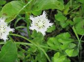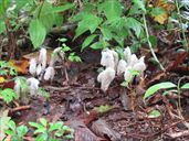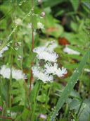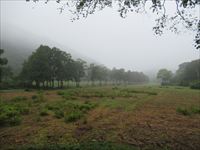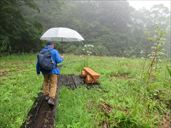 9月14日 沼の原湿原 三連休の週末。なのに雨。 予報はずっと雨。 仕方がないので、比較的降水確率が低くて、なんとか歩けそうな場所を選んで連休のなか日に行ってみることにした。 行き場所は斑尾山。 お天気サイトではなんとか曇りが維持されて、回復傾向のはずだったのに、近づいても空は明るくならず、ずっと雨。 さすがに斑尾山登山は諦めて、近くの沼の原湿原に行くことに。 湿原であれば平らなので傘を差して歩ける。 それに、熊の出没が多い昨今、見通しのよい湿原であれば、遠くに熊の姿を見たらすぐに退散できる。 人出の少ない雨の日でも、安全だろうということで。 着いてみたら、どうもトレイルランがあったらしく、ちょうどその選手たちを回収したり、道案内の印を撤去していたりする所だった。 支度をしている間にあっという間に人はいなくなり、湿原は静かになってしまった。 でも、直前まで騒がしかったのなら、なおのこと熊の心配はない。 傘を差して歩き出す。 この日の湿原は下の写真のようでしたよ。 入るなりアケボノソウが咲いている。実はこれが目当てでこちらに来たと言ってもよい。 今年はとてもたくさん咲いていた。かわいい花だよね。 雨と霧で、湿原はぼんやりとけぶっている。 あ、これも目当て。シラヒゲソウ。 湿原の背の高い葦のたぐいがすっかり刈り取られてしまっていて、足元のシラヒゲソウだけが咲いている感じだ。 おや、途中にあるベンチが新しくなっているぞ。 葦の類がない湿原。毎年、刈っている作業中に来ていたけどね。 小高くなった休憩場所のベンチも新しい。おや、こんな季節にギンリョウソウをみつけた。 アキノギンリョウソウ(ギンリョウソウモドキ)かもしれない。 ベンチから見下ろす湿原も霧の中。あ、ツリフネソウとキツリフネが並んでいる。 トリカブトも雨に濡れている。 タイリンヤマハッカ。水路に一株、オタカラコウ。 キオン、もっさりとツリフネソウ。 小さな花が花全部に水滴をつけている。雨ならでは。アキノウナギツカミらしいけど、ヘンな名前。 水路脇を傘を差して歩く。オタカラコウの花、サラシナショウマの花。 ゴマナのたくさん咲く水路脇は、トレイルランのコースだったらしく、泥っ泥の泥だらけの道になってしまっていた。 おかげで我々も泥っ泥になってしまった。 右の花はナンバンハコベという花らしい。ツル植物の小さい花です。 斑尾山登山口から見あげた図。こちらも霧。真っ白。 沼の原湿原には屋根のついた休憩場所がないので、昼食をとる場所もない。 仕方がないので、斑尾山の登山口である旧レストランチロルの軒下を借りて昼食。 三連休なのでキャンプに来たらしい人もいたが、我々の見ている間に撤収して行ってしまった。 チロルの軒下は広くてテーブルや椅子もあり、雨の日にここがあってよかったと本当に思った。ありがとうございました。 ↑ページのトップへ |