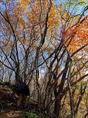 | 錦秋の国上山 今年の秋はあちこちで熊の出没があり、ちょっと山深い場所にはなかなか近づけないでいた。 幸い、弥彦山塊には熊がいないので、紅葉を見に行くのに困りはしない。 そのなかでも、国上山の稚児道の紅葉はとてもきれいなので、つい何度もお世話になることになった。 11月16日 自動車の車検の日とあって、せっかく晴れたのに午後からしか使えない日曜日。 弥彦のもみじ谷はそろそろ見ごろも過ぎたはずなので、行ってみるかということに。 ところが大渋滞で本当に近づけもしなかった。とんだ時間ロスだ。 ということで、国上山の稚児道のほんのさわりだけ歩くことにした。 お地蔵さんの所まで歩き、そこから林道に出て、林道を下る。(本当に歩行者通行禁止なので、十分注意すること) 国上の紅葉は裏切らない。林道がわも別角度のきれいさがある。 おお、キバナノアキギリがまだ残っていたぞ。 公園側にも行ってみた。左、吊り橋。ついぞ渡ったことがない。中央、国上山がぽっこりきれいに見える。 11月23日 ダンナと別行動の日曜日。連休のなか日。 とにかく色々予定があったが、あまりによく晴れていたので、2時間かからずに登って下れる国上山登山をすることにした。 雨がちな平日だったので、足回りがドロドロになるかな、と思っていたが、意外にも稚児道からの登りのほうがドロドロ。 いつもユキワリソウの頃はお寺がわの道がドロドロで難儀するのに、この日はお寺がわの道はカラッとしていた。 時間が早かったせいか、年配の方々かが意外にたくさん登っていた。 裏切らない稚児道の紅葉。ホントにここは素晴らしいです。 蛇崩れからは佐渡が見えた。右は弥彦山。 実はお寺がわの道ももみじではない紅葉がいいことが分かった。 11月30日 この日は、寺泊に所用で行ったついでに国上山に立ち寄った。 さすがに稚児道も紅葉は落ちていた。そりゃそうだ、もう明日は12月。 それでも、バスのツアーが来たりしていた。 駐車場のもみじはとても綺麗で、それをバックに写真撮影してましたよ。 この日もお地蔵さんで引き返した。 もはや冬の景色の国上山稚児道。 ↑ページのトップへ |