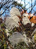 | 9月14日 上堰潟公園 そんなこんなで、雨で予定が半分変更になって、早々に帰宅した三連休のなか日。 まだそこそこ時間もあり、平地ではすっかり晴れていたので、我々のホームである上堰潟公園に行ってみることに。 なぜに、というと、この季節は藁で作った立体アートの展示があるのだ。 藁アートまつり2025の看板を横目に反対側に歩き出す。 あれ、例年ならコスモスが咲いているはずのエリアがなんだか薄紫の花で埋め尽くされているぞ。 セロシアという花らしい。 ひまわり畑のひまわりたちはすっかり種になって頭を下げている。 でも、ここのひまわりは脇から小さな花を咲かせるのよね。右なんか、1本で花冠できそう。 小さい秋はあったけど。池を一周して、さあ、藁アートに。 「越後に眠る幻獣現る」 山河の化身「豊穣の翡龍」 繁栄の狐火「稲穂の九尾」 栄華の象徴「黄金の亀」 軍神の威光「越州の輝虎」 夜明けの光「黎火の錦鯉」 私は九尾がお気に入り。 毎年楽しませてくれて、ありがとうございます。 ↑ページのトップへ |