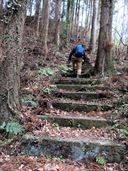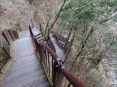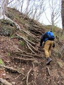 | 1月2日 月居山 2026年もめでたく明けて、今年もお外を徘徊する1年が始まった。 本年最初の登山は、地元の新潟では元旦から積雪があってとても無理な状態。 それでは、と、滝とセットで楽に登山ができる場所を考え、選んだ場所が百選の滝である袋田の滝とそのすぐ近くにある月居山だった。 実は2020年にも同じ感じで登っているので、リピの山である。(2020年の登山のレポはこちら) 1回登ったことのある山なのだが、ほぼ行程を忘れてしまっている。 新鮮な気持ちで登ることができた。 まず袋田の滝に挨拶。500円也のトンネルから吊り橋を渡って、生瀬の滝に向かう階段を通り過ぎてお土産屋のそばの登山道から登山開始。 すっかり忘れていたが、山頂直下はけっこうハードな登山道だった。 山頂で道の駅で買った栗かりんとう饅頭でコーヒータイム。 冬で何の花もなかったが、コンコンという音を聞いてアカゲラを発見。年末でアカゲラが発するコンコン音を聞いていたからこそみつけられた。 右の鳥は何かなぁ。遠かったので不鮮明。スズメほどの大きさだった。どうやら、「シメ」という小鳥らしい。 冬の山は小鳥を探すのにちょうどいい。 帰りは生瀬の滝方向に下る。 こんな真冬の遊歩道にだれもいないと思いきや、小犬連れの外国人カップルを追いかける感じの下りになった。 キャンキャン鳴く小犬にさんざん警戒されてしまった。 袋田の滝の上流などをみつつ、登りには使いたくない階段を下る。 この階段の途中で、つい登って来てしまった青年に「上に何があるんですか」と尋ねられ、小振りの滝です、と答えたら、青年は登るのをやめてしまった。 生瀬の滝、ハート型に見える滝なんだから、もうちょっと宣伝してもいいと思うよ。 この日はとても暖かい日で、袋田の滝はもちろん凍っていない状態。 登り始めは暖かく、山頂では汗ばんでいたくらいだ。 しかし、標高が上がったせいか、観音堂あたりで雪が降り始め、寒くなってしまった。 下りの最後のあたりでトイレに行きたくて行きたくて。冷えましたな。 ほぼダッシュで袋田の滝入り口近くの公衆トイレに飛び込んだ。 真冬の登山はこういうことも考慮しないと、と痛感しました。 13時03分 お土産屋の横から登山開始。 13時07分 堰堤。 13時13分 あずまやのある広場。 13時28分 ハイキングコースボイント11。 13時30分 袋田自然研究路看板の分岐。 13時32分 ボイント12。 13時34分 山頂と観音堂の分岐。 13時45分 月居城跡。 13時46分 山頂。コーヒー休憩。 14時08分 下山開始。 14時19分 山頂と観音堂の分岐。 14時22分 月居観音。 14時31分 ポイント7。 14時42分 野鳥の看板。 14時46分 ポイント6。 14時54分 ポイント4。生瀬の滝分岐。 14時56分 生瀬の滝。 15時ちょうど ポイント3。 15時06分 スチール階段終了。 ↑ページのトップへ |